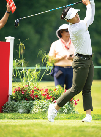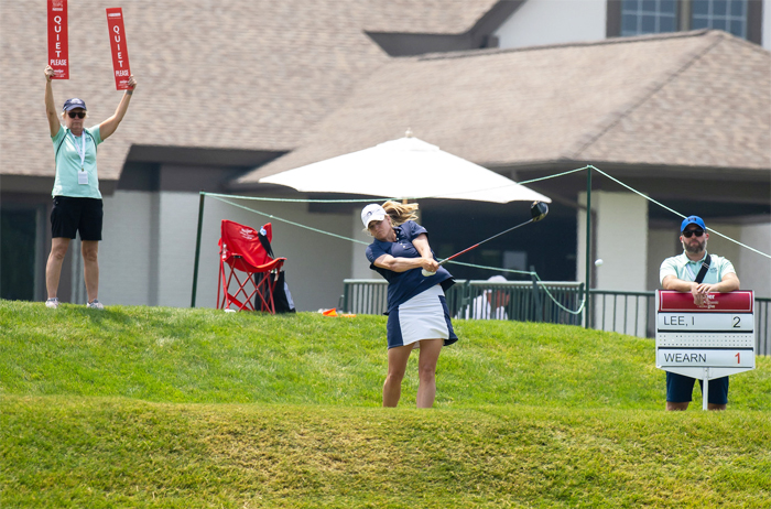 BELMONT, MI, June 19, 2023: For the third straight week Leona Maguire (Ireland), finishes in the top 10, this time besting Ariya Jutanugarn (Thailand) and out lasting Amy Yang (Korea) to capture the Meijer LPGA Classic for Simply Give. Starting in the second group and trailing the leader, Maguire would shoot -8 under and win for the first time this year.