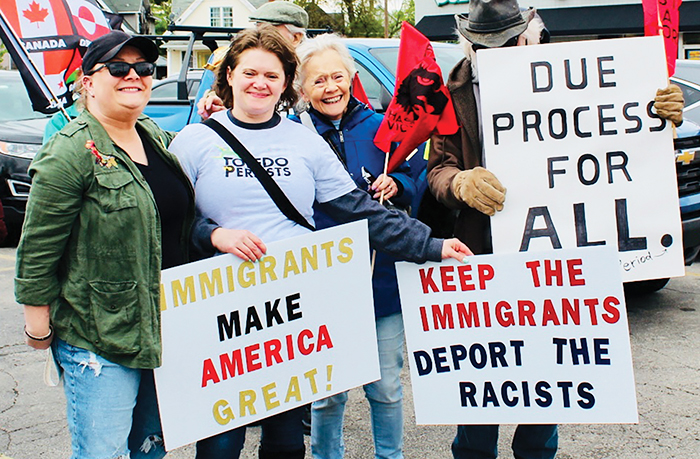 On Saturday, May 3, 2025, people from Northwest Ohio and the University of Michigan gathered for the Farm Labor Organizing Committee’s (FLOC) peaceful March & Rally for Immigration Reform in South Toledo. The group gathered with their poster boards, waving their red FLOC flags, and chanting in support of immigration reform and immigrants. President of FLOC, Baldemar Velasquez lead the march and Father Notter prayed over the gathering as he has many times in the past. President Velasquez shared with me that Father Notter has been involved with the Latinx community and this movement since he (Velasquez) was first arrested during the Campbell Soup Company boycott of the late 1970s and early 1980s.