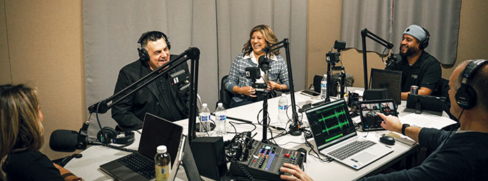 Reflejos de la primera grabación de La Prensa HABLA de La Prensa, Inc. en colaboración con WGTE. En la foto aparecen los copresentadores: La Dra. Linda Alvarado-Arce (Editora de La Prensa) y Kevin Salinas, junto con nuestros dos primeros invitados, Yvonne Ramos y Jacob Estrada. Se emitirá el 6 de enero a las 7 p. m. en su aplicación de streaming favorita o en WGTE.com.