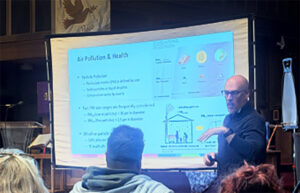 On Wednesday, March 18, 2026, at 5 pm, the I-475 Neighborhoods Coalition hosted a free community presentation on the harmful effects of highway pollutants on children’s health, attracting a full house at Monroe Street United Methodist Church (3613 Monroe Street). Dr. Patrick Ryan, PhD, MS, a professor at the University of Cincinnati’s Department of Pediatrics and Department of Environmental Health, was the speaker. Participants enjoyed pizza, veggies with dip, sweets, and they had resource tables.