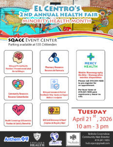 Toledo, OH — El Centro Hub at the Sofia Quintero Art & Cultural Center is gearing up for its 2nd Annual Community Health Fair on Tuesday, April 21, 2026, from 10:00 AM to 3:00 PM. The event will be held at the Sofia Quintero Event Center at 1225 Broadway St. in Toledo’s Old South End and is free and open to the community, with sponsorship from Anthem.
